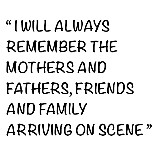 I will always remember the mothers and Fathers, friends and family arriving on scene, screaming for their loved one, when their loved one can’t hear them and never will, ever again.